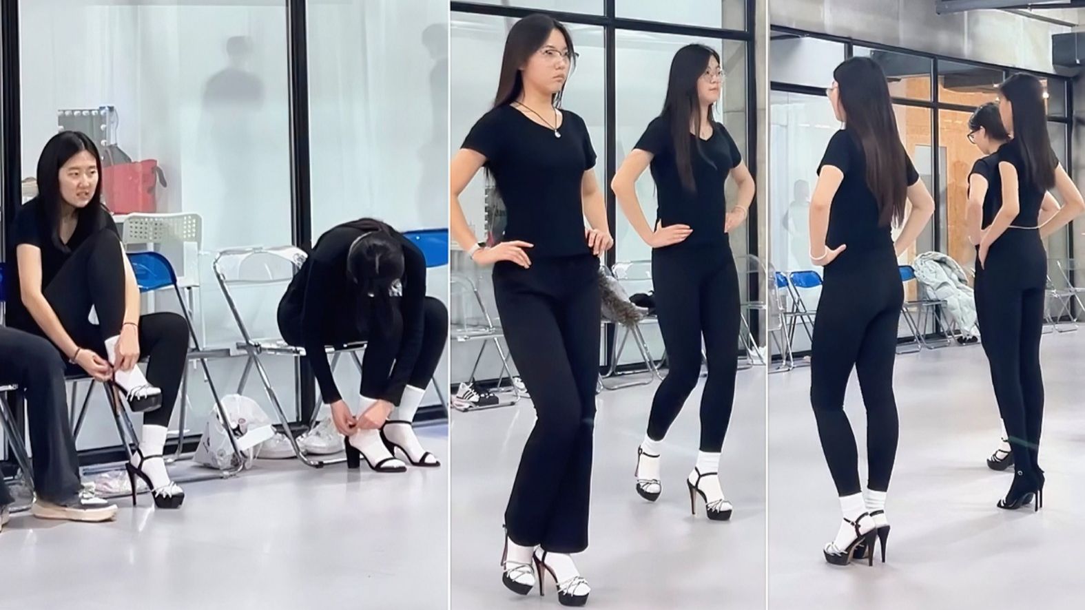 模特生换鞋 瑜伽裤高跟鞋白袜子组合 单脚站立 台步训练 基本功 【4日合集】 - 260226_143542