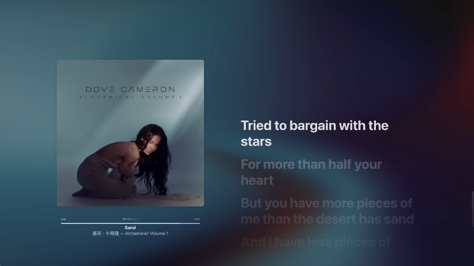 UP主: 封面: 简介:歌曲:Sand歌手:Dove Cameron链接:https://music.apple.com/cn/album/sand/1712367573?i=1712367585音乐、封面仅作分享如有侵权告知会立即删除...