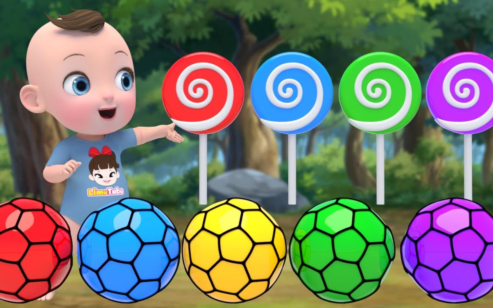 彩色葡萄球和糖果棒棒糖 学习颜色