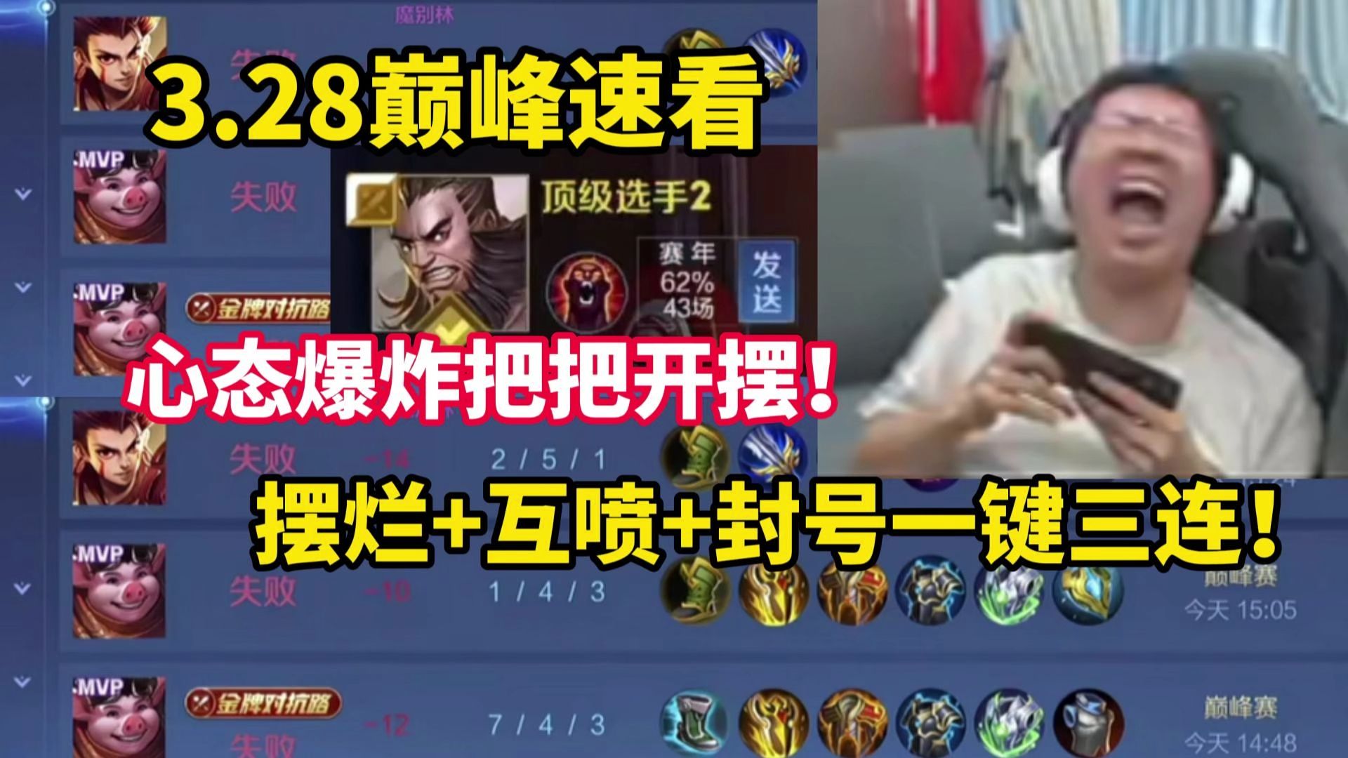 UP主: 封面: 简介:【狂魔哥】3.28巅峰速看,摆烂互喷+封号,和系统顶级智斗答题!/素材来自某牙直播狂魔哥解说狂魔哥解说的直播间: hy/919191狂魔哥解说的B站空间:https://space.bilibili.co...