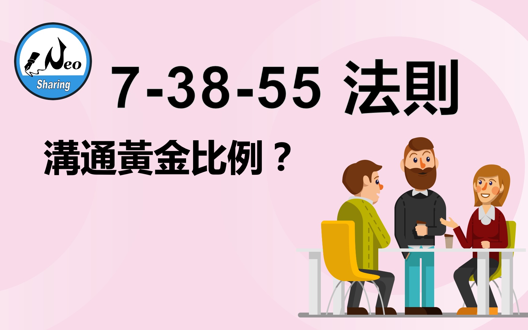 UP主: 封面: 简介:7-38-55 法则是由美国心理学教授 Albert Mehrabian 在1971年提出作者的研究表明,我们对某人说话的感受,不是只根据说话的实际内容,更多的是根据说话者的语音语调和肢体来...