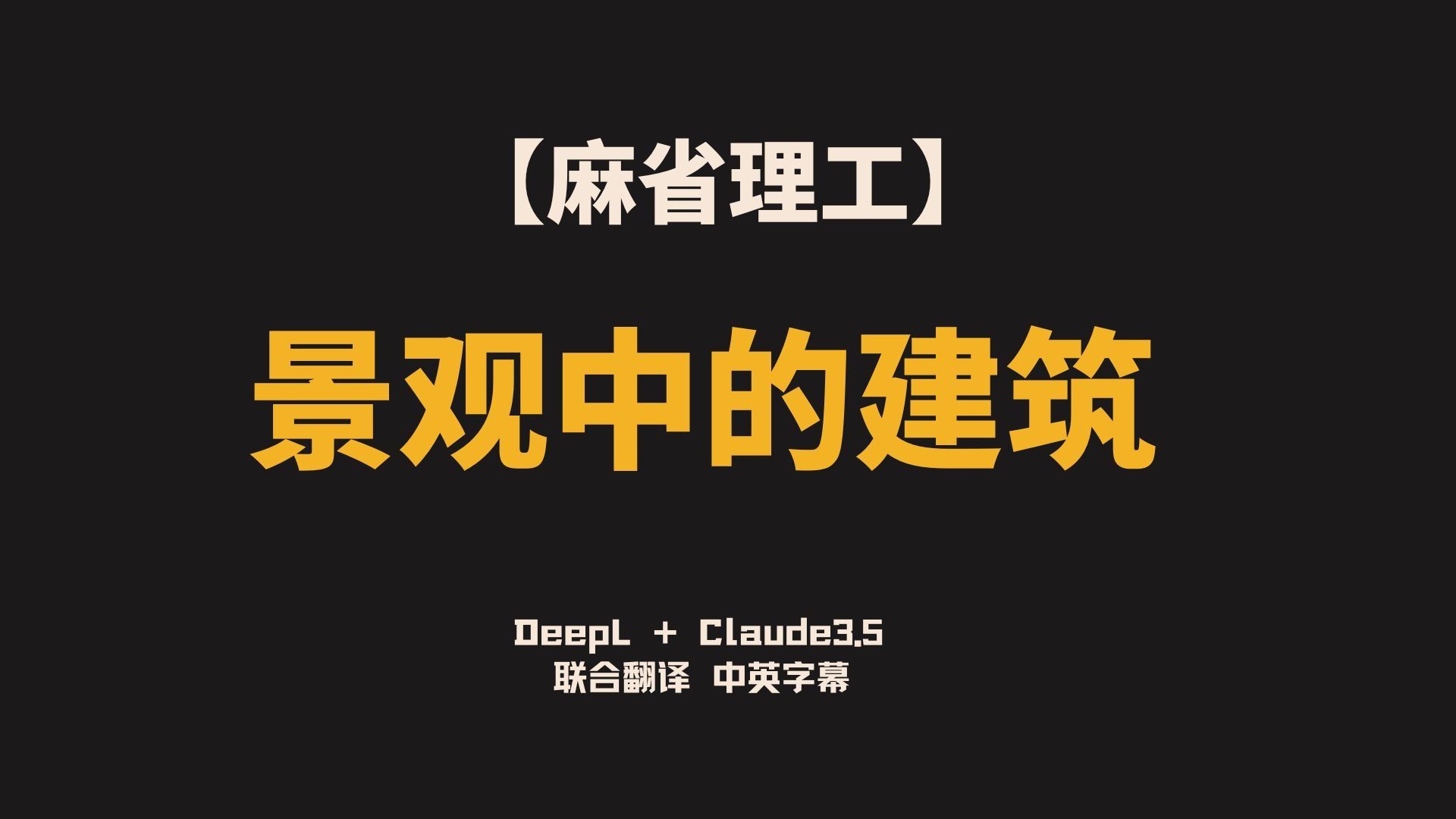 麻省理工:景观中的建筑 - 第1讲 | MIT 4.125 建筑工作室:景观中的建筑