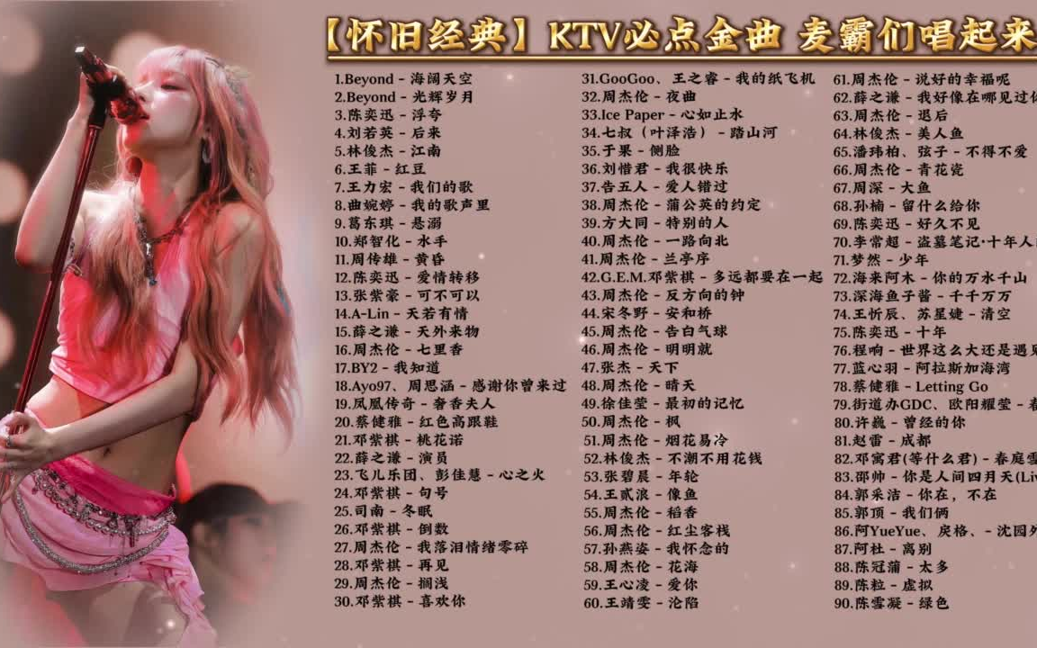 视频选集 01.Beyond - 海阔天空 02.Beyond - 光辉岁月 03.陈奕迅 - 浮夸 04.刘若英 - 后来 05.林俊杰 - 江南 07.王力宏 - 我们的歌 08.曲婉婷 - 我的歌声里 09.葛东琪 - 悬溺 10.郑智化 - 水手 11.周传雄 - 黄昏 12.陈奕迅 - 爱情转移 13.张紫豪 - 可不可以 14.A-Lin - 天若有情 15.薛之谦 - 天外来物 16.周杰伦 - 七里香 17.BY2 - 我知道 18.Ayo97、周思涵 - 感谢你曾来过 19.凤凰传奇 - 奢香夫人 20.蔡健雅 - 红色高跟鞋 21.G.E.M.邓紫棋 - 桃花诺 22.薛之谦 - 演员 23.F.I.R.飞儿乐团、彭佳慧 - 心之火 24.G.E.M.邓紫棋 - 句号 25.司南 - 冬眠 26.G.E.M.邓紫棋 - 倒数 27.周杰伦 - 我落泪情绪零碎 28.G.E.M.邓紫棋 - 再见 29.周杰伦 - 搁浅 30.G.E.M.邓紫棋 - 喜欢你 31.GooGoo、王之睿 - 我的纸飞机 32.周杰伦 - 夜曲 33.Ice Paper - 心如止水 34.七叔(叶泽浩) - 踏山河 35.于果 - 侧脸 36.刘惜君 - 我很快乐 37.告五人 - 爱人错过 38.周杰伦 - 蒲公英的约定 39.方大同 - 特别的人 40.周杰伦 - 一路向北 41.周杰伦 - 兰亭序 42.G.E.M.邓紫棋 - 多远都要在一起 43.周杰伦 - 反方向的钟 44.宋冬野 - 安和桥 45.周杰伦 - 告白气球 46.周杰伦 - 明明就 47.张杰 - 天下 48.周杰伦 - 晴天 49.徐佳莹 - 最初的记忆 50.周杰伦 - 枫 51.周杰伦 - 烟花易冷 52.林俊杰 - 不潮不用花钱 53.张碧晨 - 年轮 54.王贰浪 - 像鱼 55.周杰伦 - 稻香 56.周杰伦 - 红尘客栈 57.孙燕姿 - 我怀念的 58.王心凌 - 爱你 58.周杰伦 - 花海 60.王靖雯 - 沦陷 61.周杰伦 - 说好的幸福呢 62.薛之谦 - 我好像在哪见过你 63.周杰伦 - 退后 64.林俊杰 - 美人鱼 65.潘玮柏、弦子 - 不得不爱 66.周杰伦 - 青花瓷 67.周深 - 大鱼 68.孙楠 - 留什么给你 69.陈奕迅 - 好久不见 70.李常超(Lao乾妈) - 盗墓笔记·十年人间 71.梦然 - 少年 72.海来阿木 - 你的万水千山 73.深海鱼子酱 - 千千万万 74.王忻辰、苏星婕 - 清空 75.陈奕迅 - 十年 76.程响 - 世界这么大还是遇见你 77.蓝心羽 - 阿拉斯加海湾 78.蔡健雅 - Letting Go 79.街道办GDC、欧阳耀莹 - 春娇与志明 80.许巍 - 曾经的你 81.赵雷 - 成都 82.邓寓君(等什么君) - 春庭雪 83.邵帅 - 你是人间四月天(Live) 84.郭采洁 - 你在,不在 85.郭顶 - 我们俩 86.阿YueYue、戾格、小田音乐社 - 沈园外 87.阿杜 - 离别 88.陈冠蒲 - 太多 89.陈粒 - 虚拟 90.陈雪凝 - 绿色