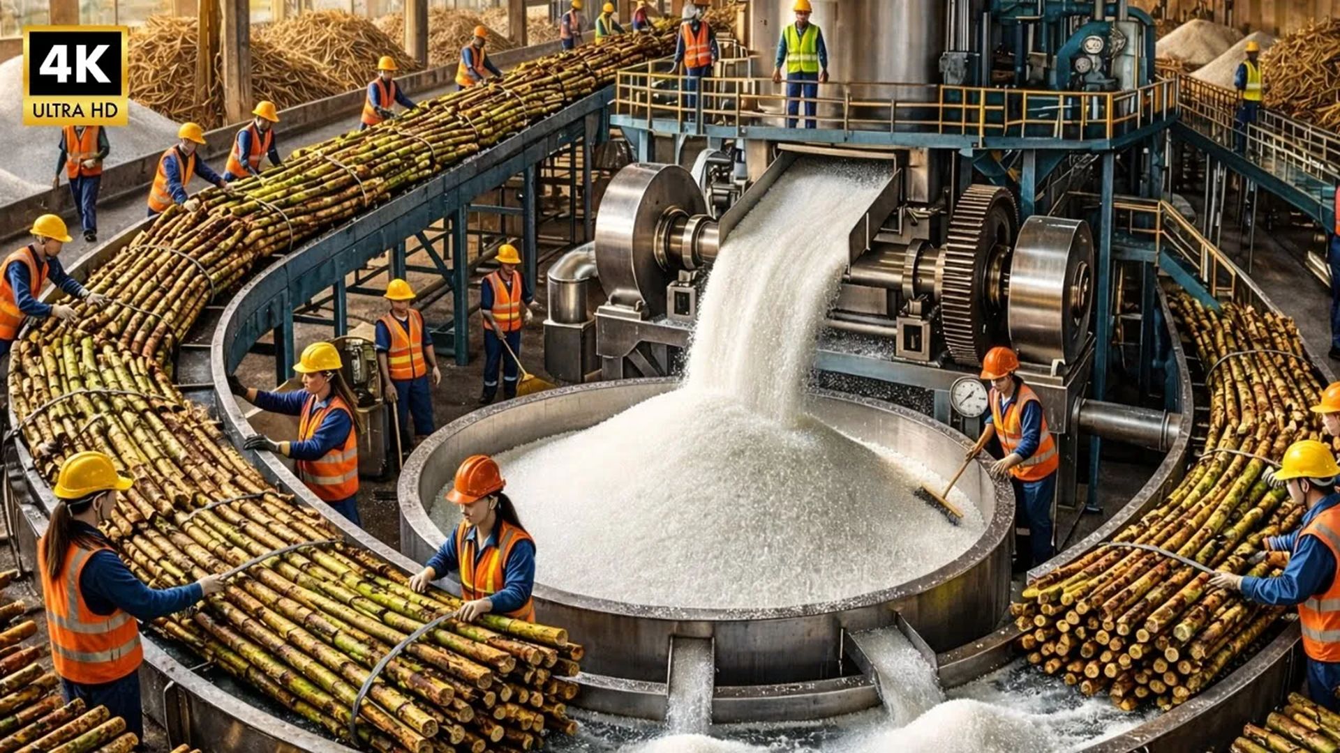 轧糖厂是如何将甘蔗加工成黄糖和白糖的过程,看完后涨见识了