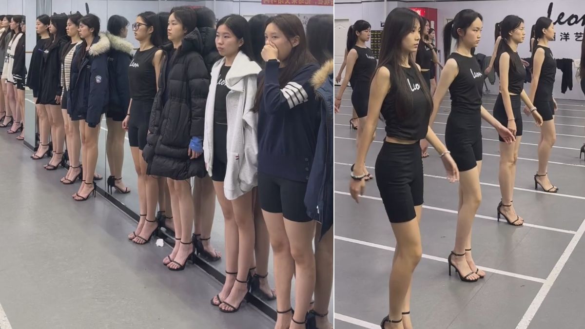 即使很多学生都冻感冒了 也要坚持穿高跟凉鞋短裤训练 模特生训练日常 - 站姿 台步 形体