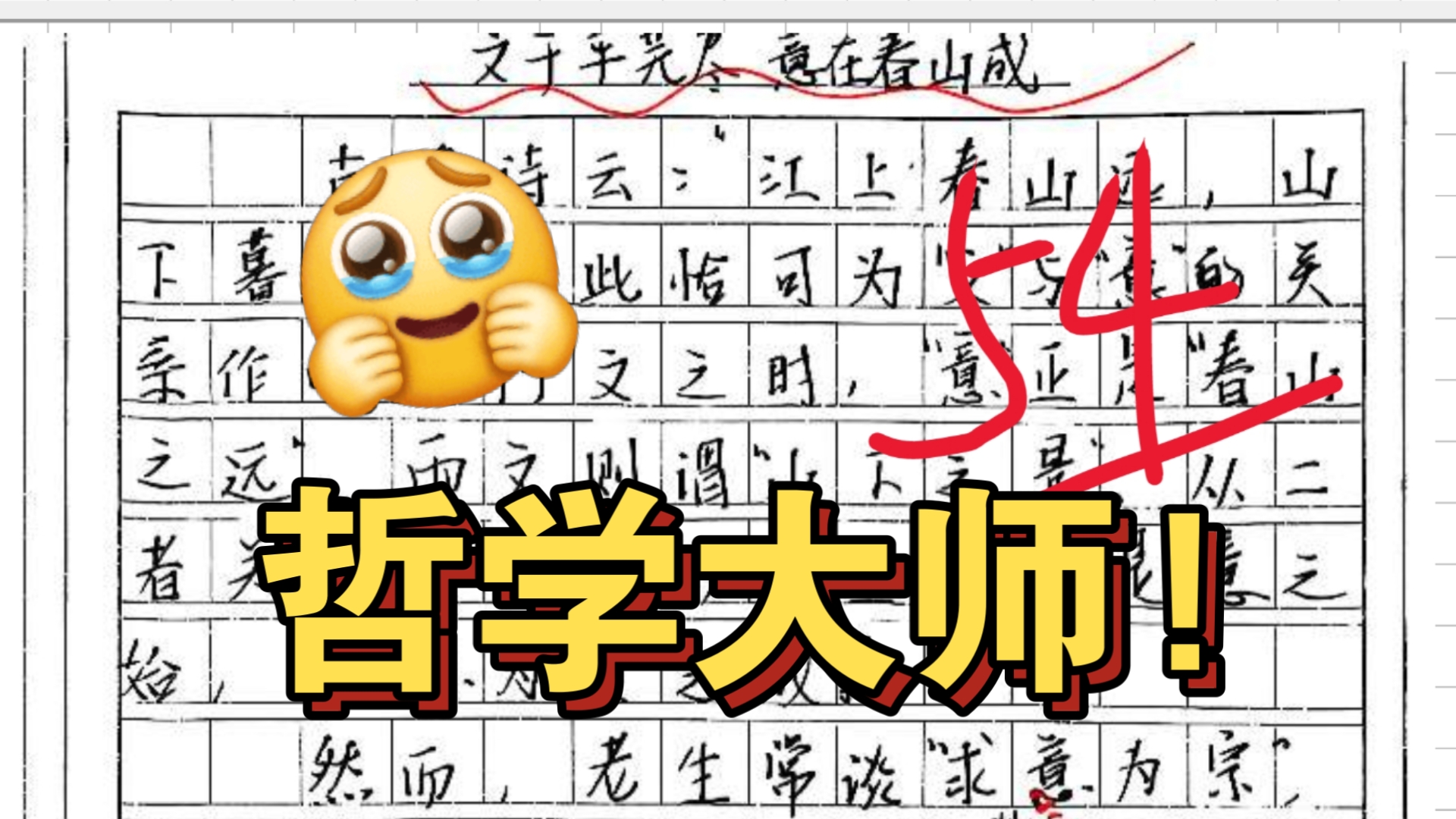 语文作文菌的视频 碾压全场!诗性与神性齐飞,潇洒执笔落墨成王!《文于平芜尽,意在春山成》 大哲学家!这居然是高中生的思想深度!《与天齐,同地厚》粉丝投稿57分作文 给跪了!这居然是高中生的思想深度?55分真低了!《苔痕上阶,不轻率来去》 杀疯了!江苏一模惊现60分满分神作!阅卷组全体起立!《轨道与旷野》:人生是旷野,是数不尽的可能性…… 强到离谱!南开中学57分学霸震撼出手,这才是降维打击!《巧表情,妙达意》 如此深厚积累太恐怖了!高考满分实至名归!《愿以盛世之梦,赠慰少陵野老》 沉淀五年实战之作!清北班不外传的作文技巧终于来了! 爆改粉丝低分作文!速来避雷!你是不是也有这样的问题? 语文138真神降临!这拿什么比!高考满分太震撼!《我愿给你歌唱的希望》 华师一附中惊艳58分作文!我言文化自信|深厚积累技惊四座!作文菌深度解析! “心有沟壑,不惧平原”辽宁联考58分范文杀疯了!确实别出心裁!《心有沟壑,何惧身处平原》 直接跪了!57分悍然登顶,思维满分逻辑完美!《“很中国”何以立足于世界》 封神!湖北联考学霸杀出重围!《人生的跑马场》太绝了!