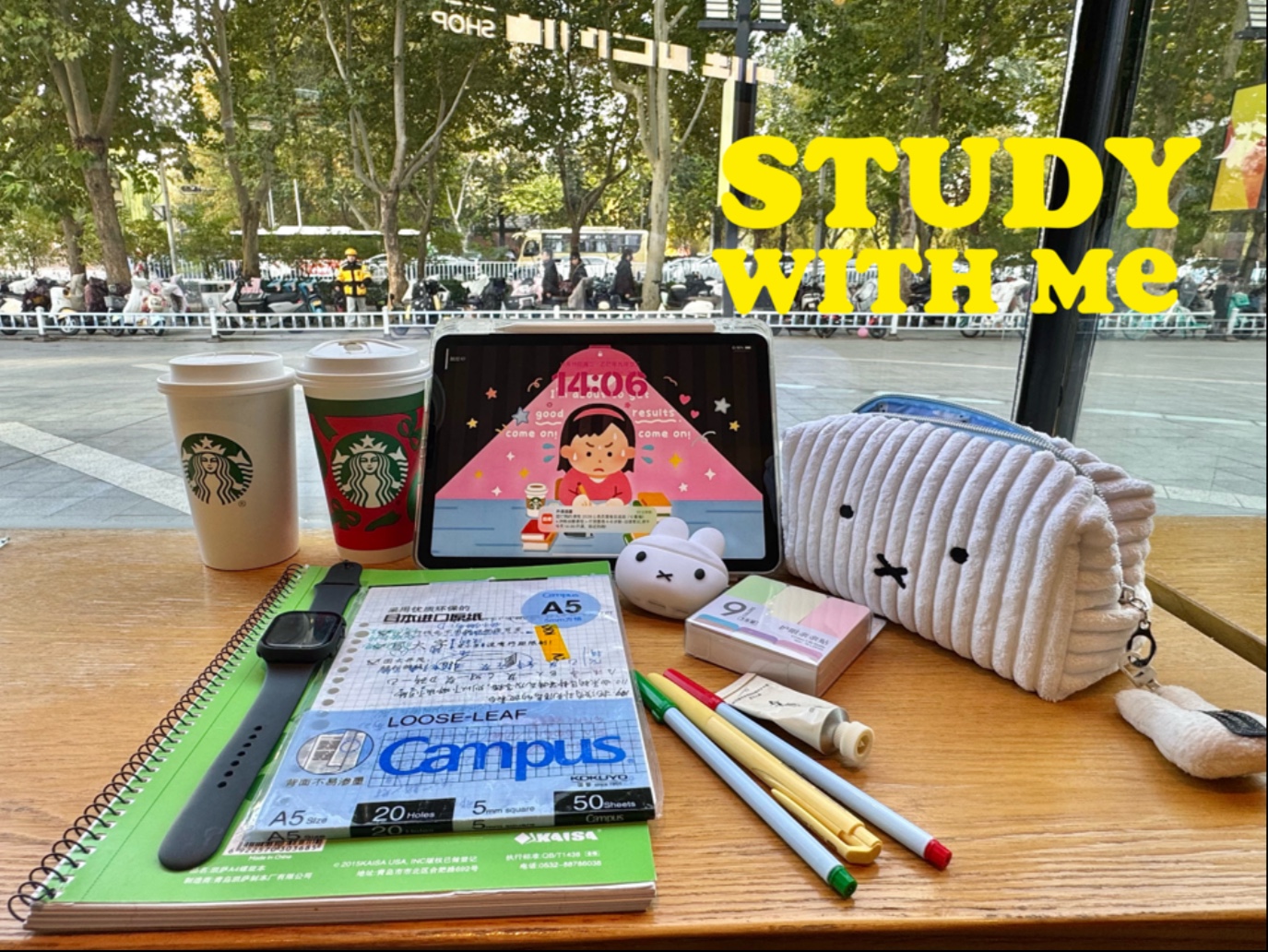 3h星巴克伴学|study with me|沉浸式学习|实时环境音|无倍速无音乐|