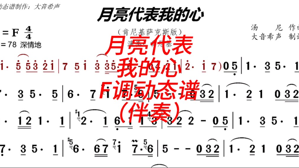 肯尼基《月亮代表我的心》F调动态伴奏谱(肯版伴奏)