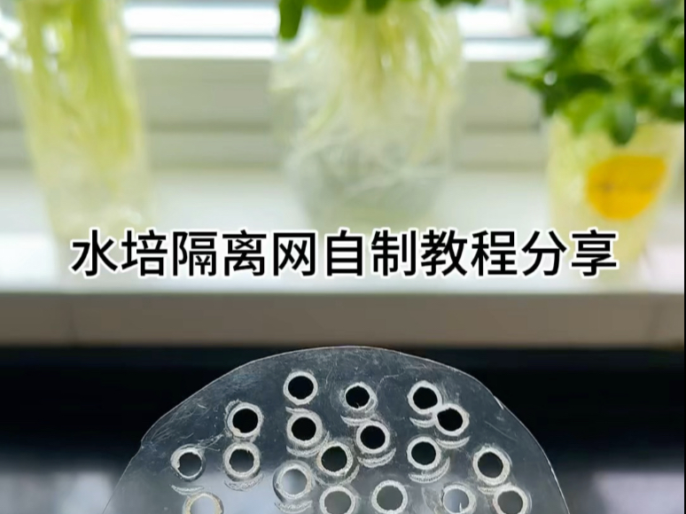 水培植物定植篮手工DIY隔离网教程~家里任何不要的塑料片,剪成水培容器瓶口大小,再用电烙打孔工具给它打孔,打好孔,把发芽的植物塞进孔里就可以了~