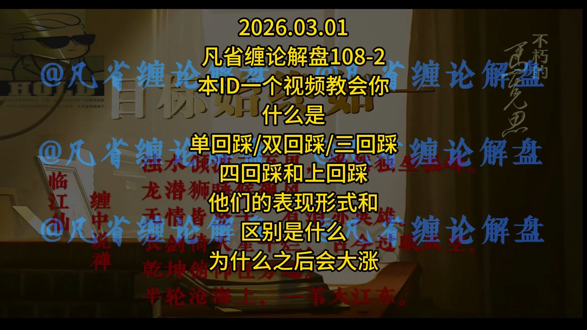 凡省缠论解盘的视频 2026.03.01-凡省缠论解盘108-2-本ID一个视频教会你-什么是单回踩-上回踩-双回踩-三回踩-四回踩?他们的表现形式和区别是什么?为什么之后会大涨? 2026.02.27-凡省缠论解盘-点评两个面首-聊聊中枢-区间套-教你如何取巧学习缠论。 什么样的股票才能真正大涨