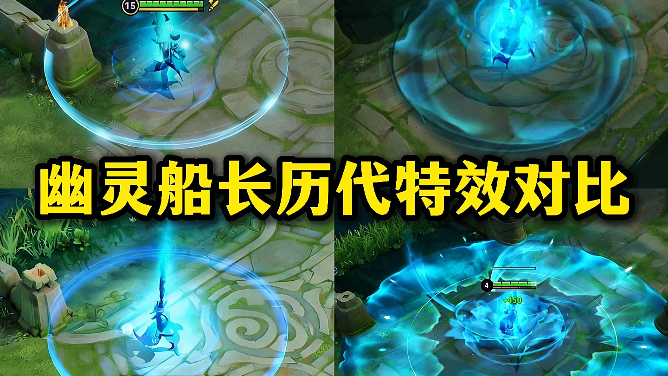 幽灵船长历代特效对比,幽灵船长在去年吐槽方块手意外翻红,作为老牌的史诗皮肤,没有正规的优化过特效,但因为曹操原皮多次翻新技能特效,幽灵船长也跟着用翻新换色特效。