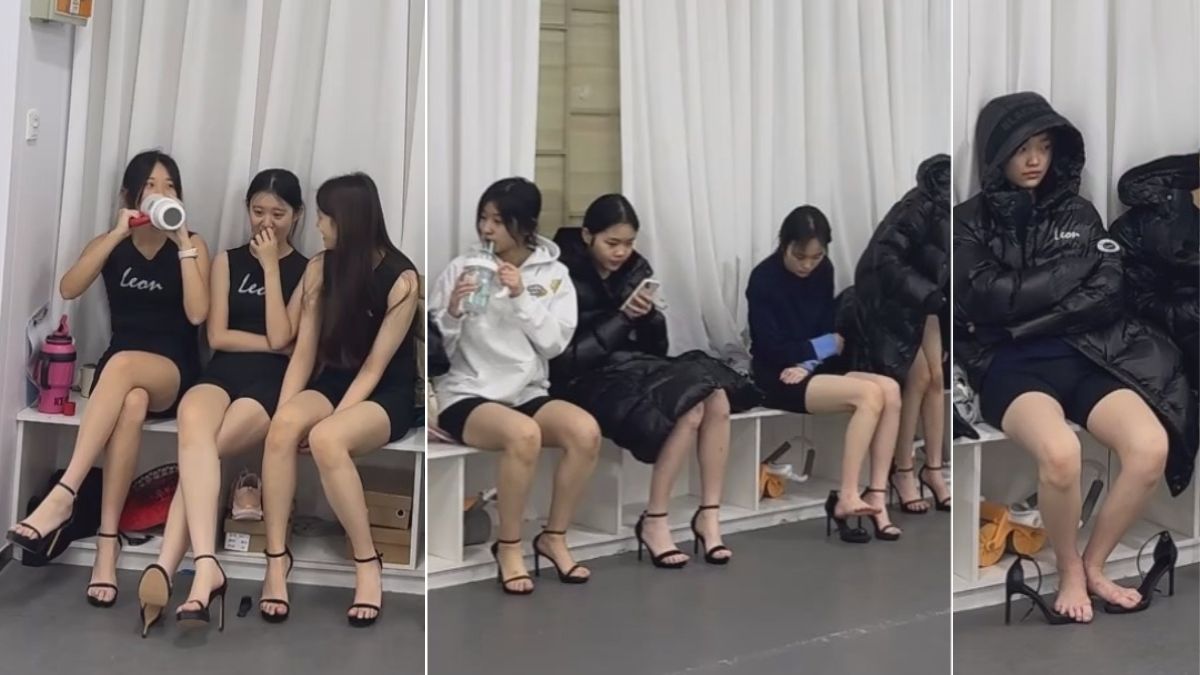 模特生训练 高跟鞋 休息
