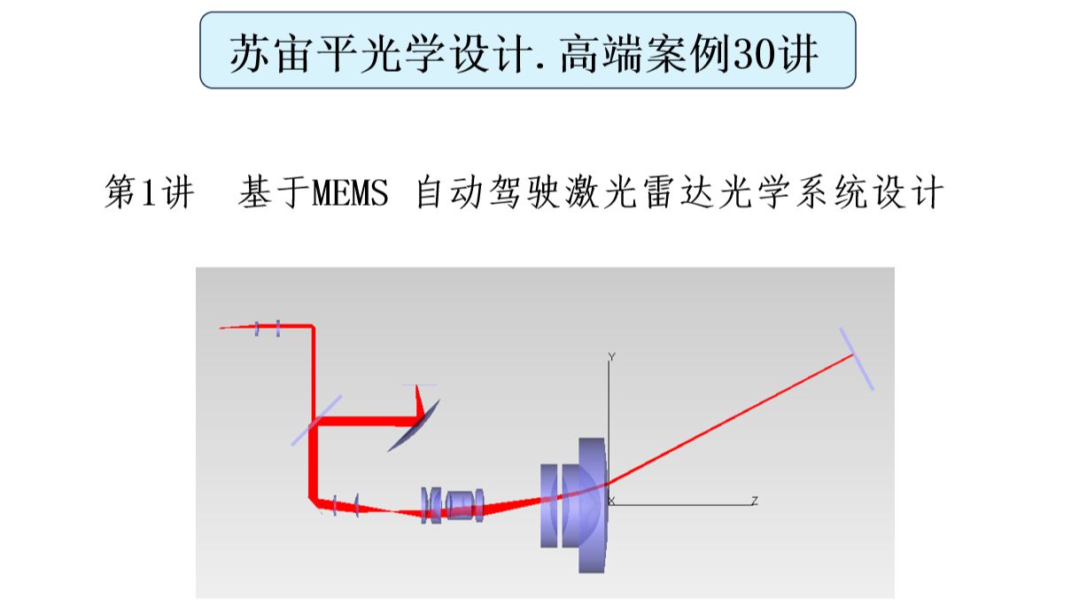UP主: 封面: 简介:高端光学设计案例 30 讲》第 1 讲:基于 MEMS 自动驾驶激光雷达光学系统设计由《非成像光学系统设计方法与实例》作者苏宙平博士主讲,全程免费实战课程,无套路纯干货。本...