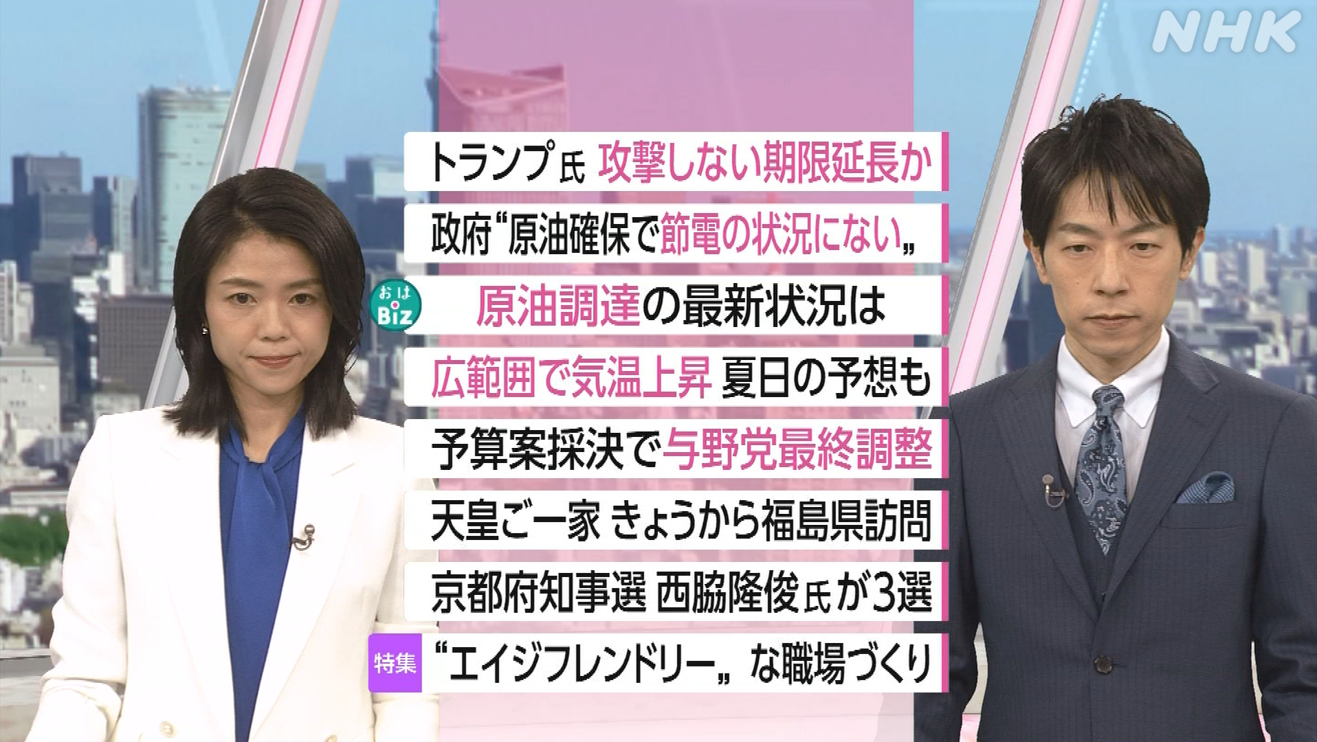 NHK おはよう日本 4月6日(月) 米 撃墜軍機の乗員救出 伊蘭は否定・相次ぐ施設攻撃 原油調達現在地・天皇一家と被災地 深き誼・シニアに寄添う職場づくり 他