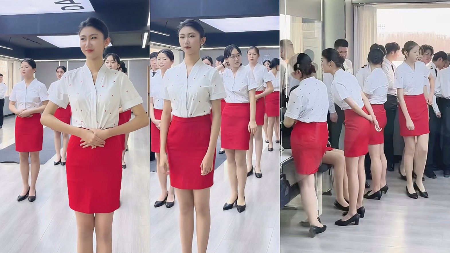 航服生日常训练 制服礼仪 镜头经常对着一个女生录