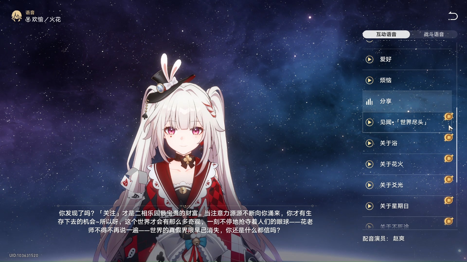 火花角色语音,说不死途是勇者扮演小透明,还说他失去了狼群的回应,难道不死途真是折足之狼?还想爻光组成“爻花手”组合