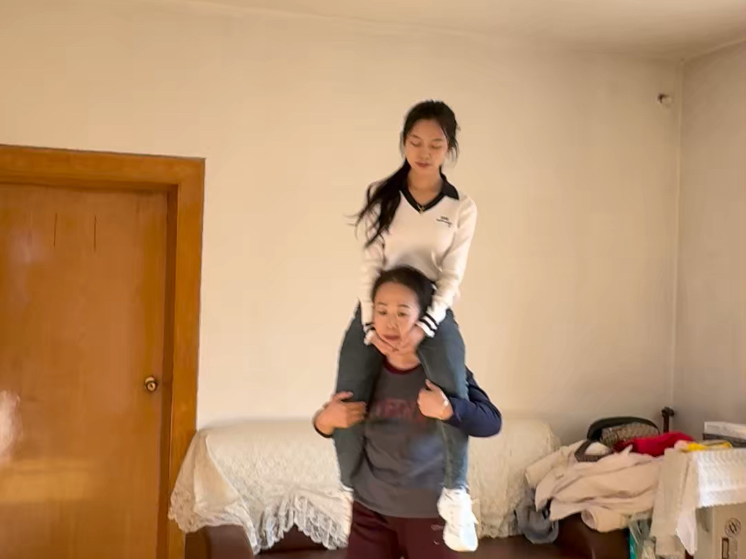 女大学生骑脖子