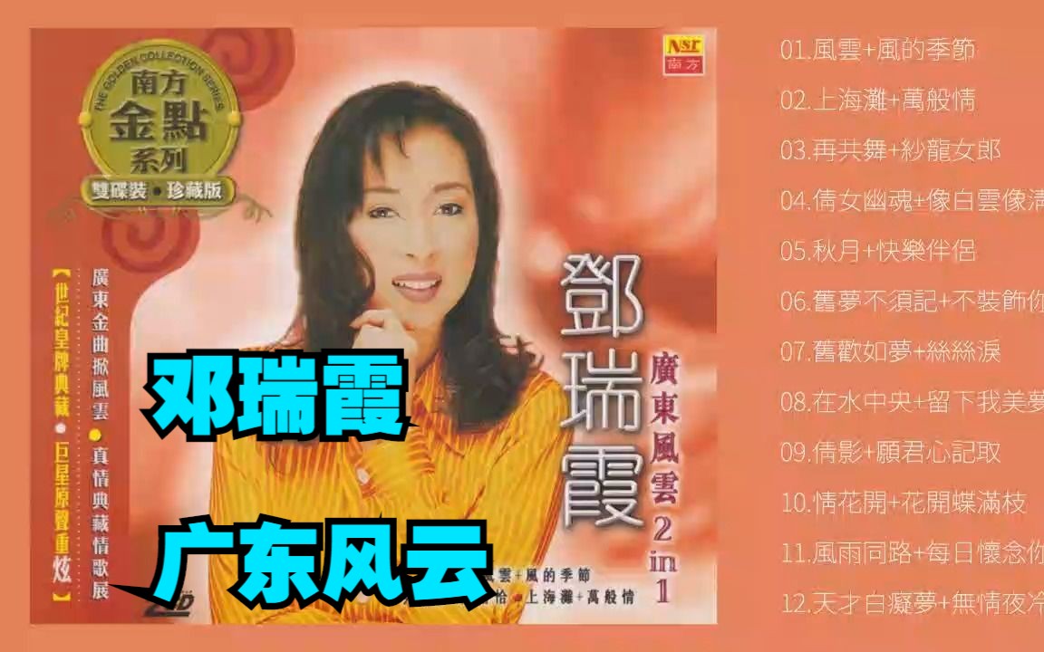 音乐迷醉指南的视频 邓瑞霞2006经典粤语老歌辑《广东风云》 2CD-CD1 邓瑞霞专辑《香港粤语名曲 顺流逆流》 邓瑞霞1987年专辑《午夜梦回》 邓瑞霞2004 年专辑《离别的叮咛》 邓瑞霞2000年专辑《情歌篇篇》 黄凯芹2018年专辑《十里春风》 邓瑞霞2016年专辑《邓瑞霞精选集》