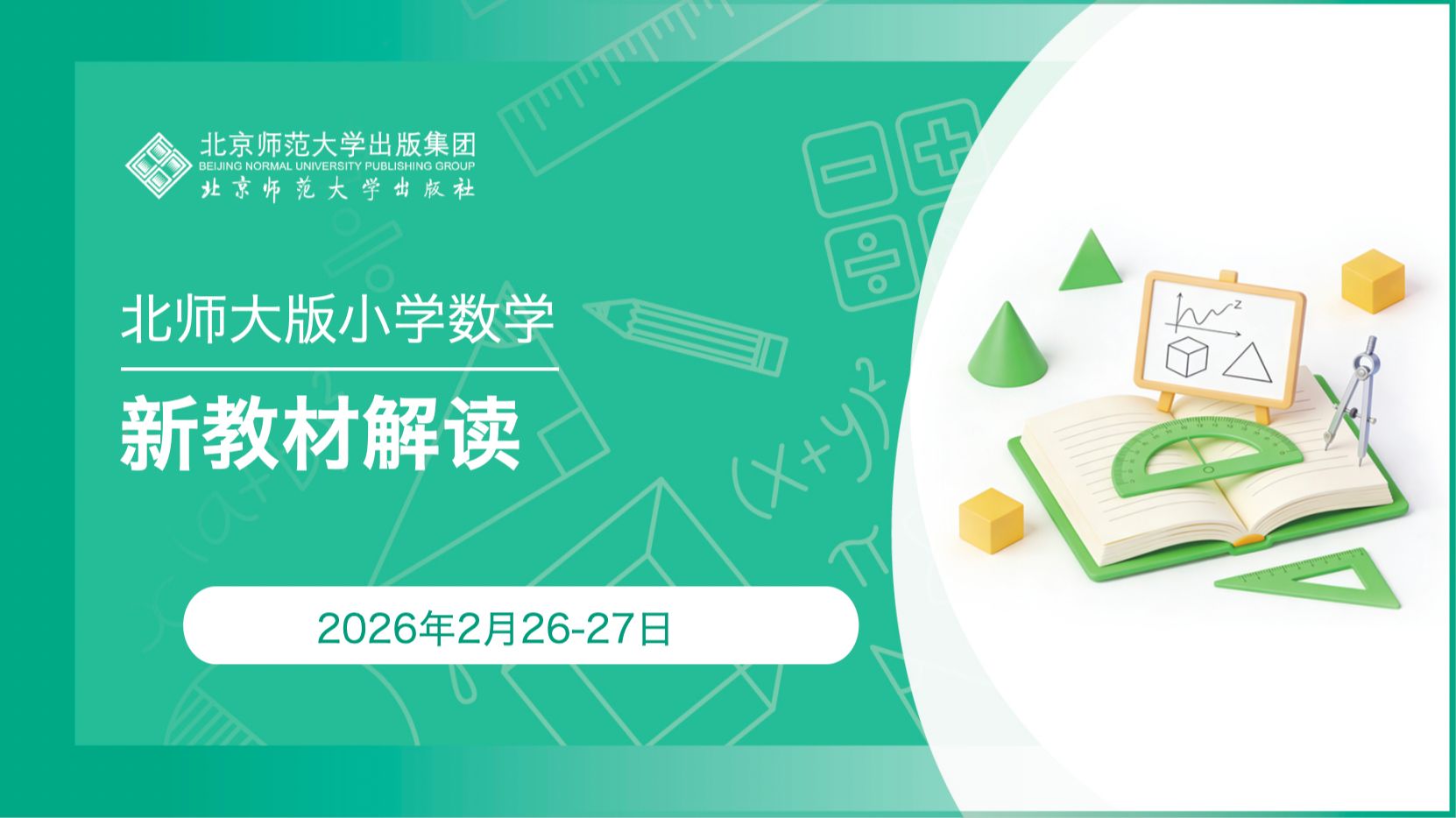 北师大出版社官方账号的视频 (2.26上午)北师大版小学数学一年级下册教材解读 北师大版初中数学新教材“问题解决策略”教学指导及案例分析--李林 (9.14上午10:10)人工智能促进小学数学教育变革创新 (9.16上午9:00)加强数学符号语言教学 提升学生解题能力 (2.27上午)北师大版初中数学七年级下册教材解读 (2.27下午)北师大版初中数学八年级下册教材解读
