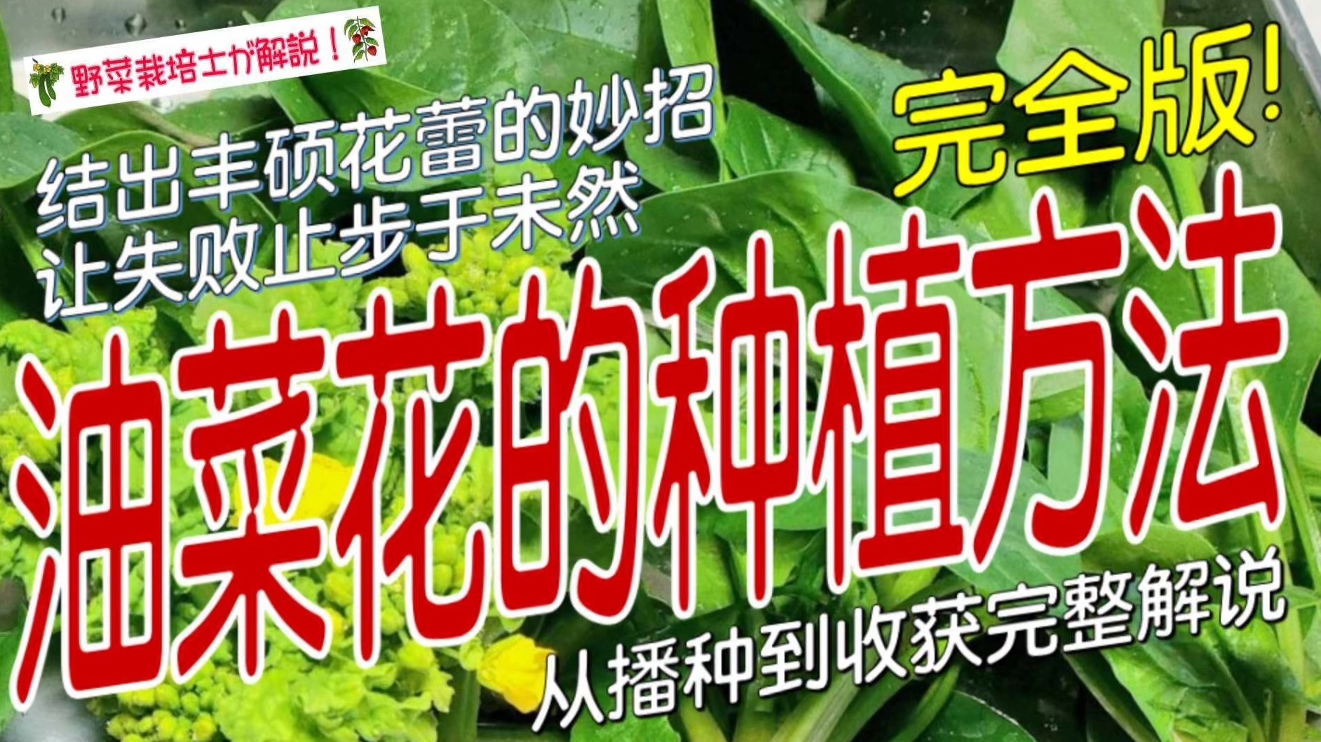 油菜花的种植方法这段时长约22分钟的视频为您讲解了油菜花的种植方法和要点。从种植用容器的选择和土壤整备这些播种前的准备工作,到播种、移栽、间苗、浇水、追肥直至采收...