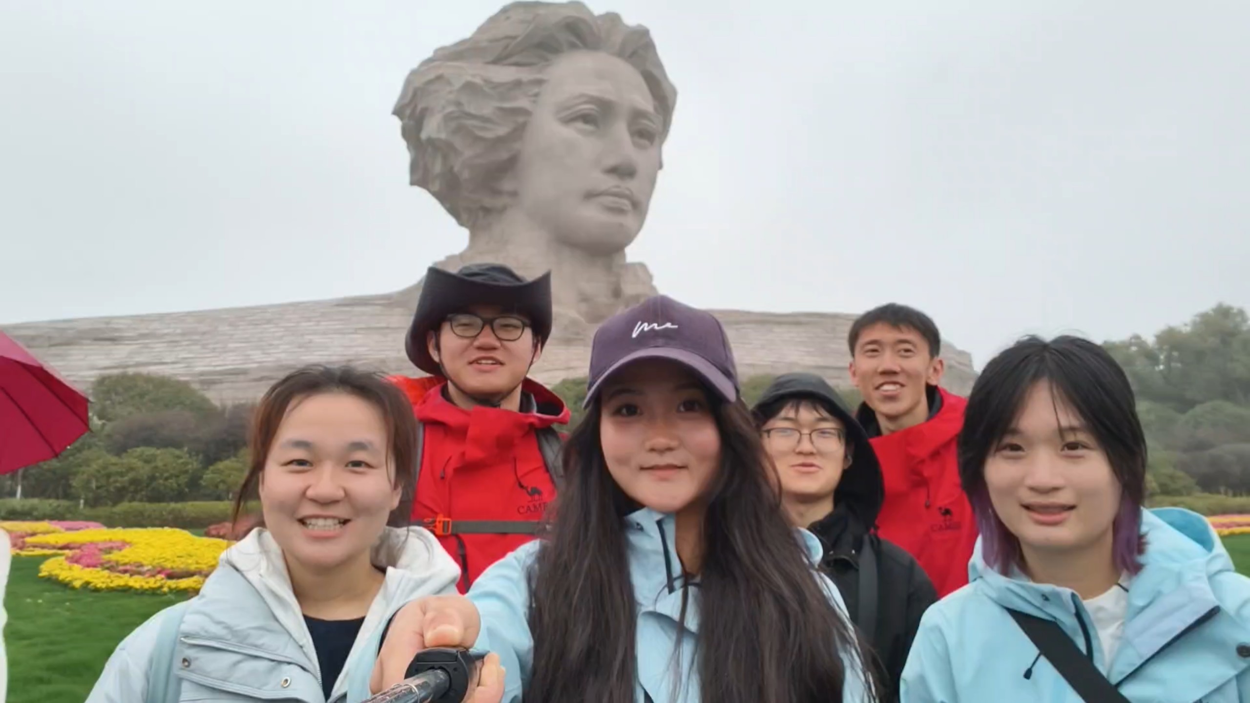 六位大学生在橘子洲头朗诵《沁园春·长沙》。恰同学少年,风华正茂;书生意气,挥斥方遒!