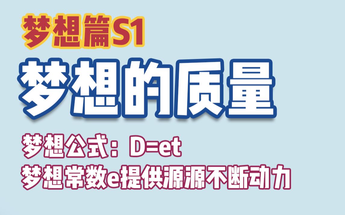 这个视频我给大家分享了自己原创的一个梦想公式并且提出了梦想常数e的概念详细阐述了e为什么是固定的梦想她为什么有引力,能吸引着我们,为我们提供源源不断的动力...