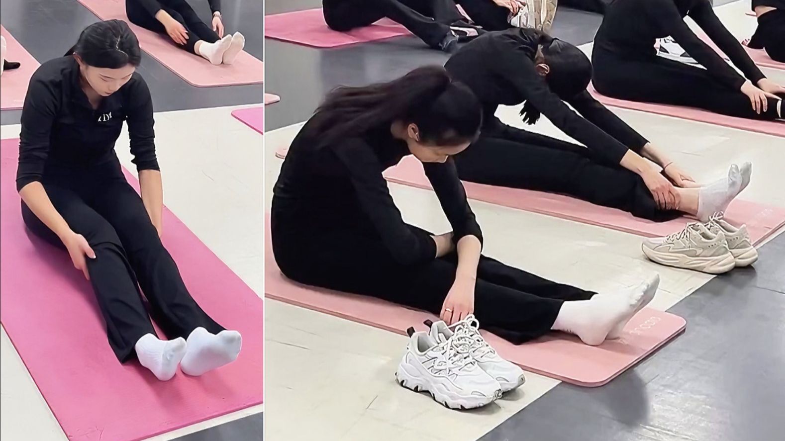 模特生日常训练 瑜伽垫拉伸 平板支撑 【双视角】【特写镜头】 - 视角1