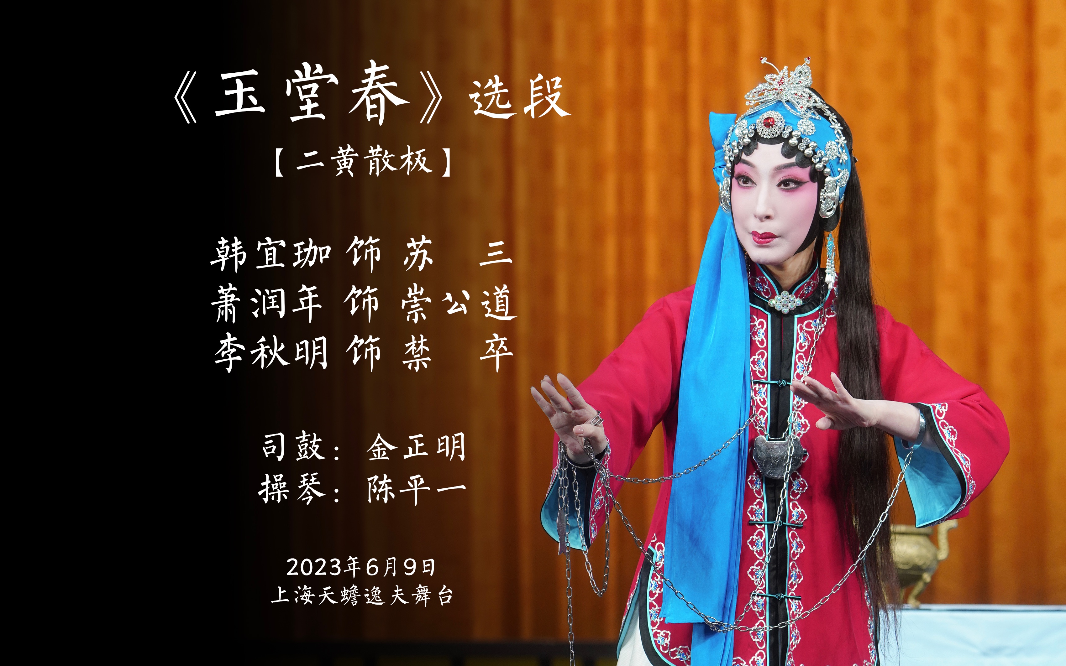 “伶歌三叠”韩宜珈尚派京剧专场 第一场 《玉堂春》选段“忽听得唤苏三” 韩宜珈饰苏三萧润年饰崇公道李秋明饰禁卒司鼓:金正明 操琴:陈平一 2023年6月9日演于天蟾逸夫舞...