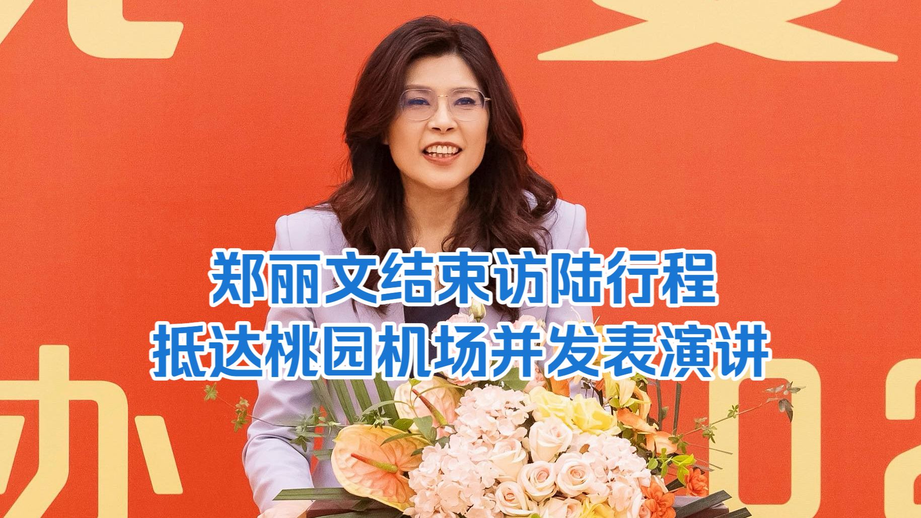 郑丽文结束访陆行程抵达桃园机场并发表演讲