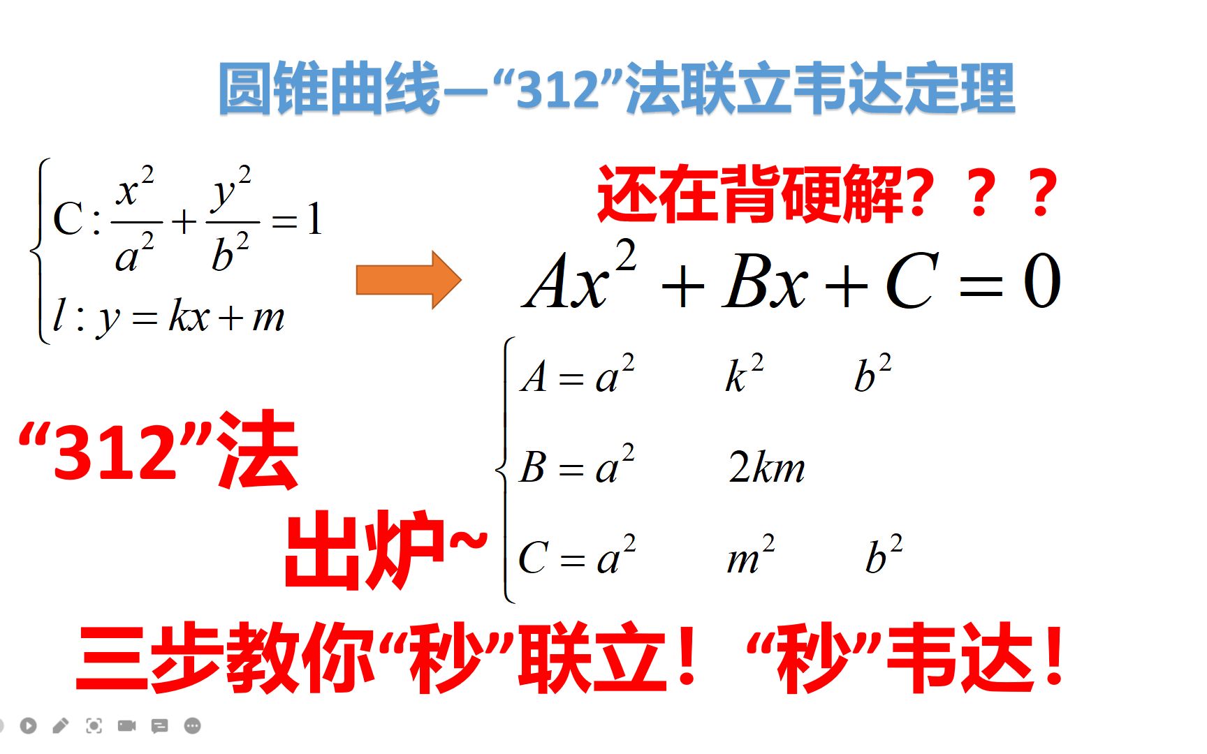 ShowBL > 圆锥曲线——椭圆方程联立与韦达定理——“312”法