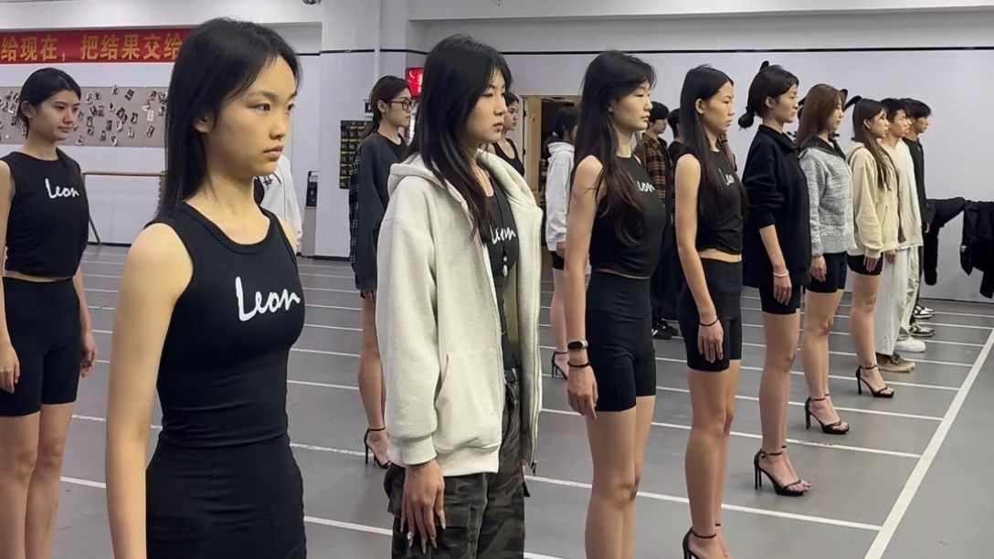 模特生日常训练 天气寒冷也要坚持训练 高跟鞋走姿训练