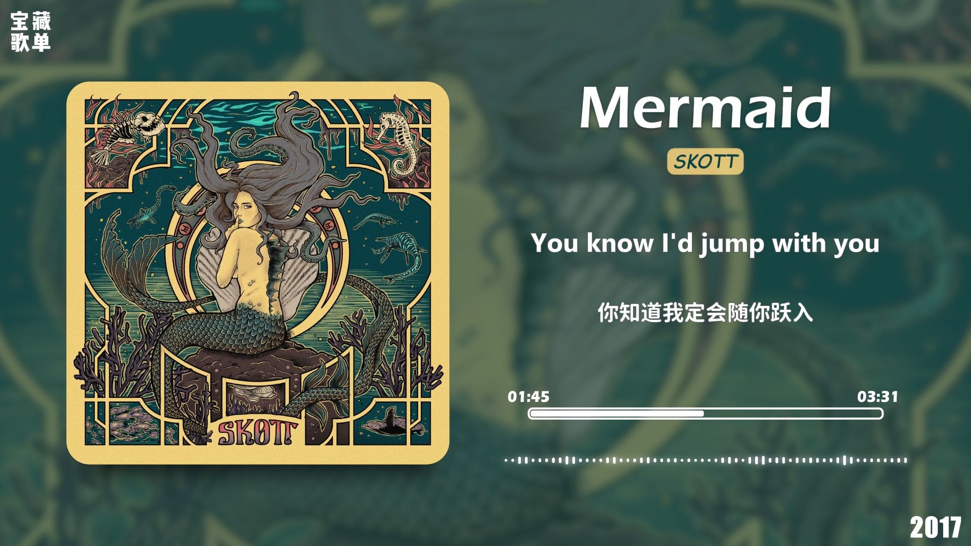 UP主: 封面: 简介:音乐分享本期推荐:英语歌曲《Mermaid》—— Skott链接:https://music.163.com/song?id=491604012图源:歌曲封面不定期推荐各类音乐,最好戴上耳机听哦本视频仅用于音乐分...