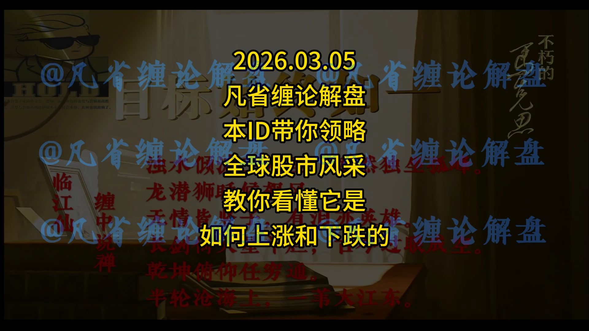 凡省缠论解盘的视频 2026.03.05-凡省缠论解盘-本ID带你领略全球股市风采-教你看懂它是如何上涨和下跌的 2026.03.04-凡省缠论解盘-聊聊指数-说说分型-为什么分型如此重要? 2026.03.04-凡省缠论解盘-紧急澄清分型讲解-展示高级班课程内容-走势应该如何当下性去运用和判断-缠论吊打一切技术! 2026.03.01-凡省缠论解盘108-2-本ID一个视频教会你-什么是单回踩-上回踩-双回踩-三回踩-四回踩?他们的表现形式和区别是什么?为什么之后会大涨? 2026.02.27-凡省缠论解盘-点评两个面首-聊聊中枢-区间套-教你如何取巧学习缠论。 什么样的股票才能真正大涨