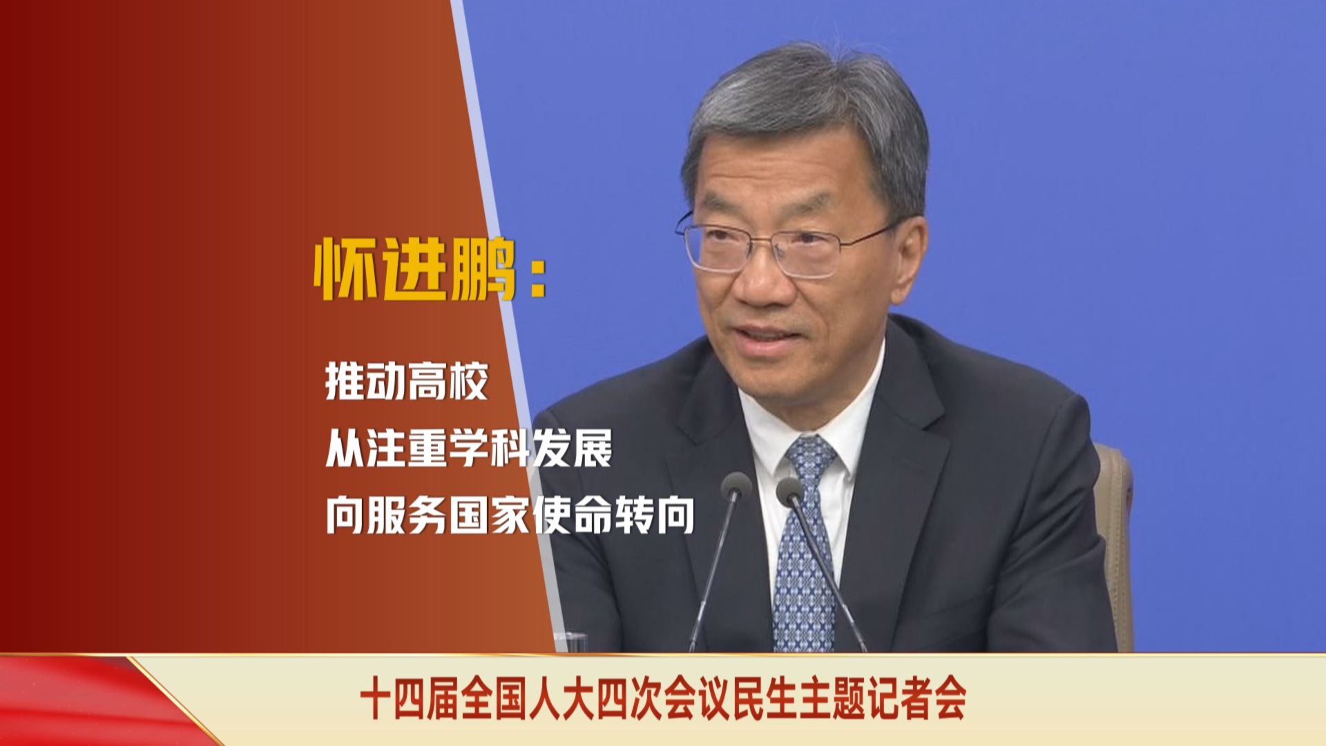 十四届全国人大四次会议举行民生主题记者会,怀进鹏表示,“十五五”时期将大力推动高校从注重学科发展向服务国家使命转变。