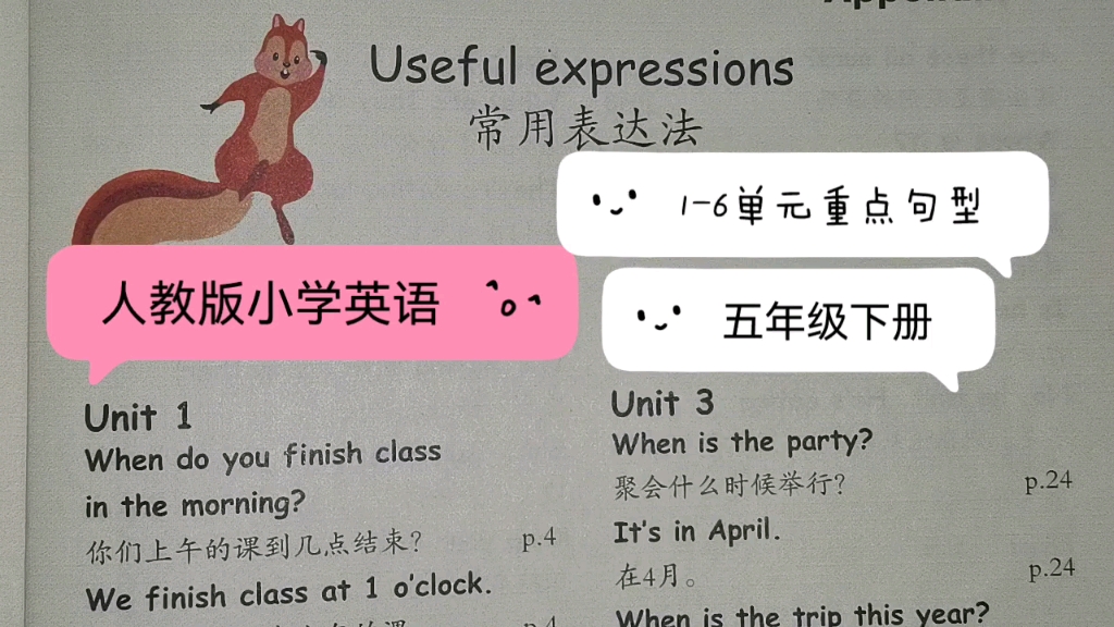 人教版小学英语五年级下册常用表达法(1-6)单元重点句型