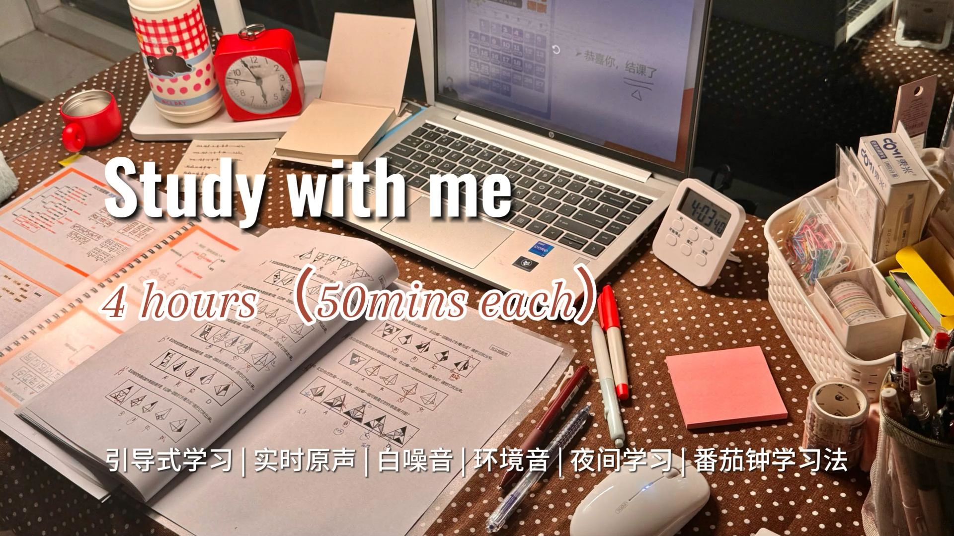 4h引导式伴学|夜间居家学习|实时原声无倍速|番茄钟学习法|含铃声提醒|沉浸式学习|学习纯动力|环境音|白噪音
