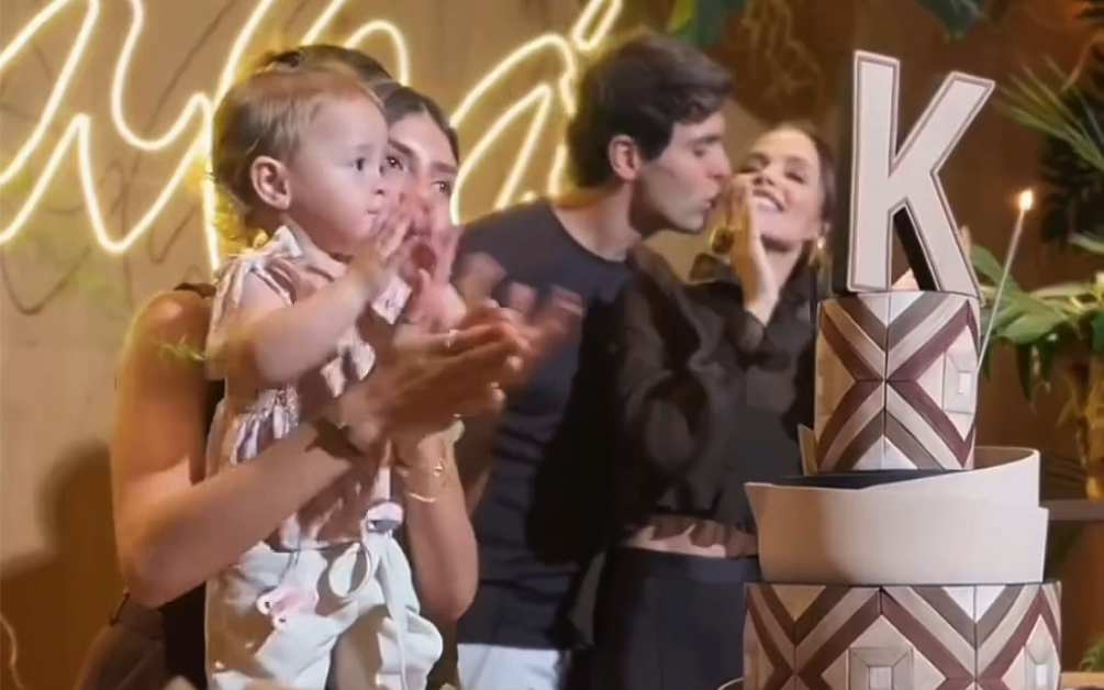 卡卡一家人庆祝生日,现场亲吻老婆