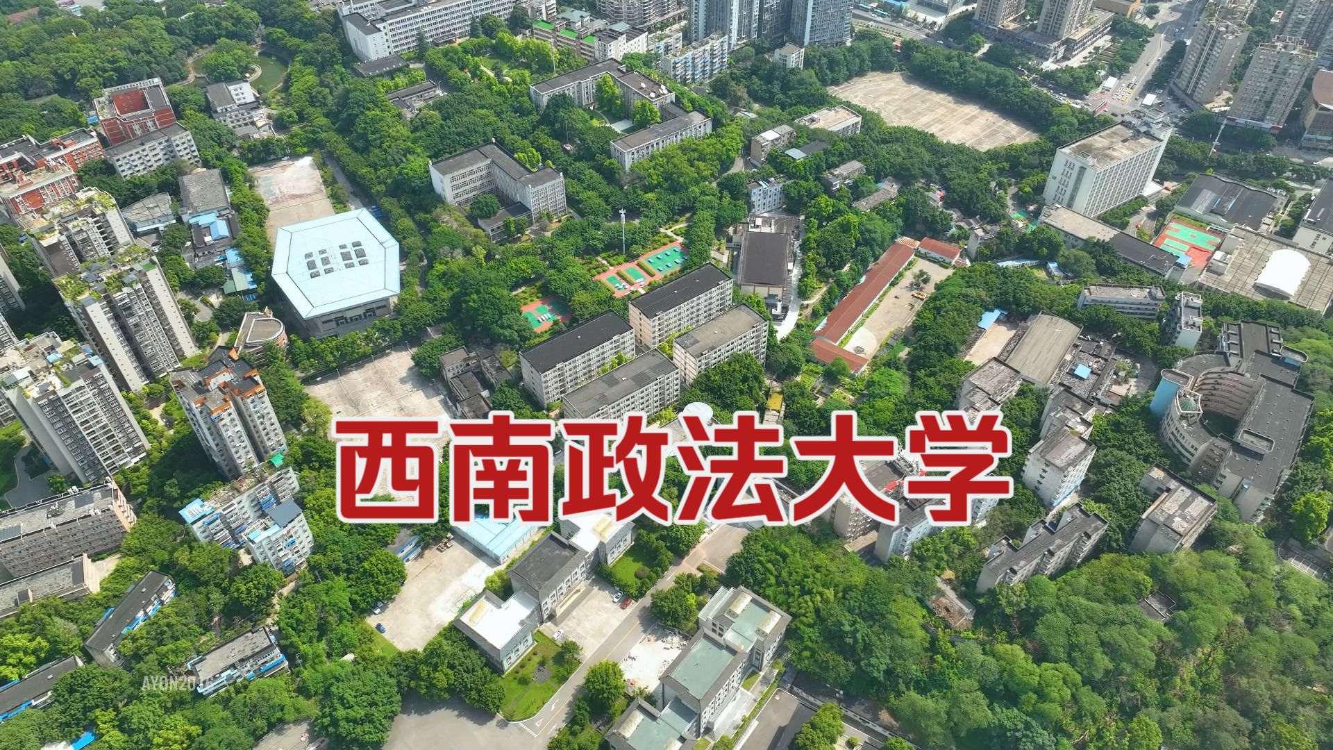重庆西南政法大学校园航拍视频_4K御三