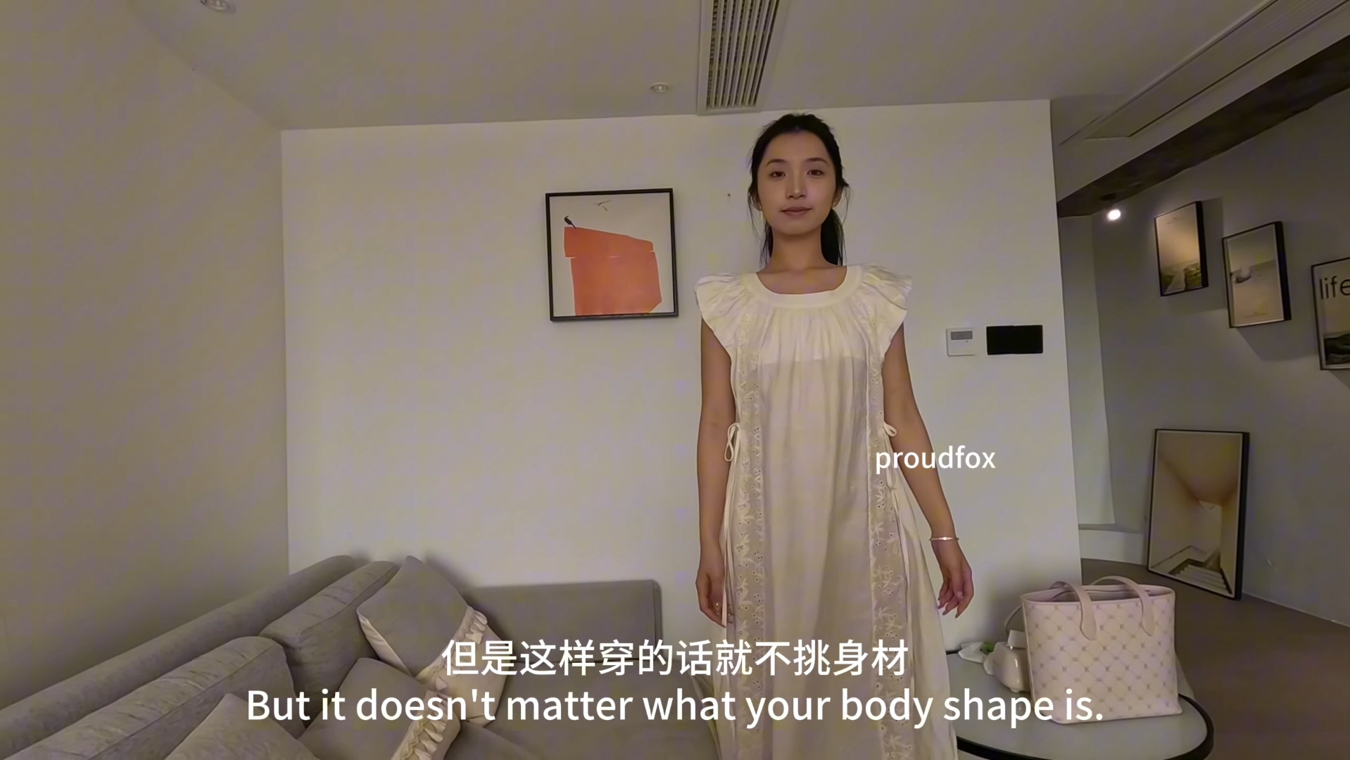清纯的大学生优优来啦,展示我们proudfox设计的两片式连衣裙