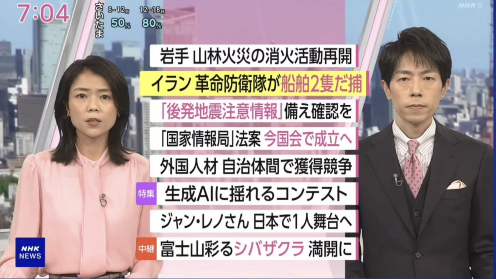 NHK おはよう日本 4月23日(木) 米「停戦延長」発表も高まる緊張・岩手山林火災・自治体間で外国人材獲得競争・AI台頭 問われるコンテストの在り方 他