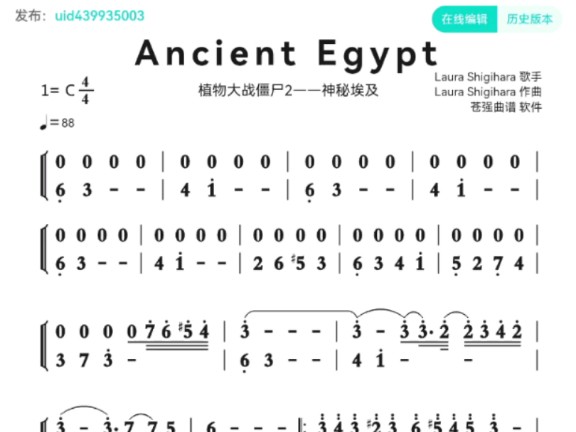 植物大战僵尸2神秘埃及简谱音乐