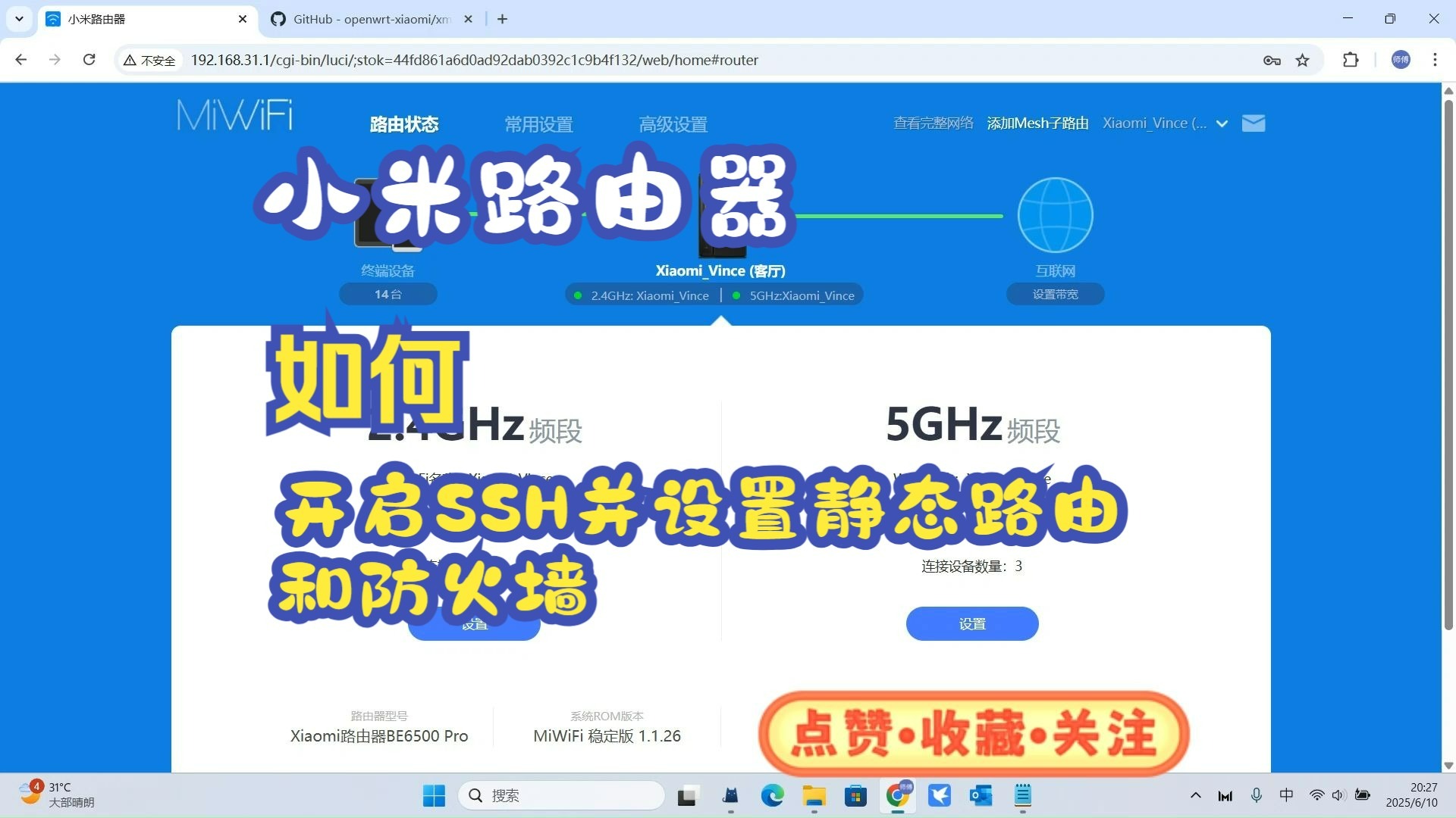 UP主: 封面: 简介:开启SSH的补丁:https://github.com/openwrt-xiaomi/xmir-patcher静态路由修改的地方:/etc/config/network加上:config route op...
