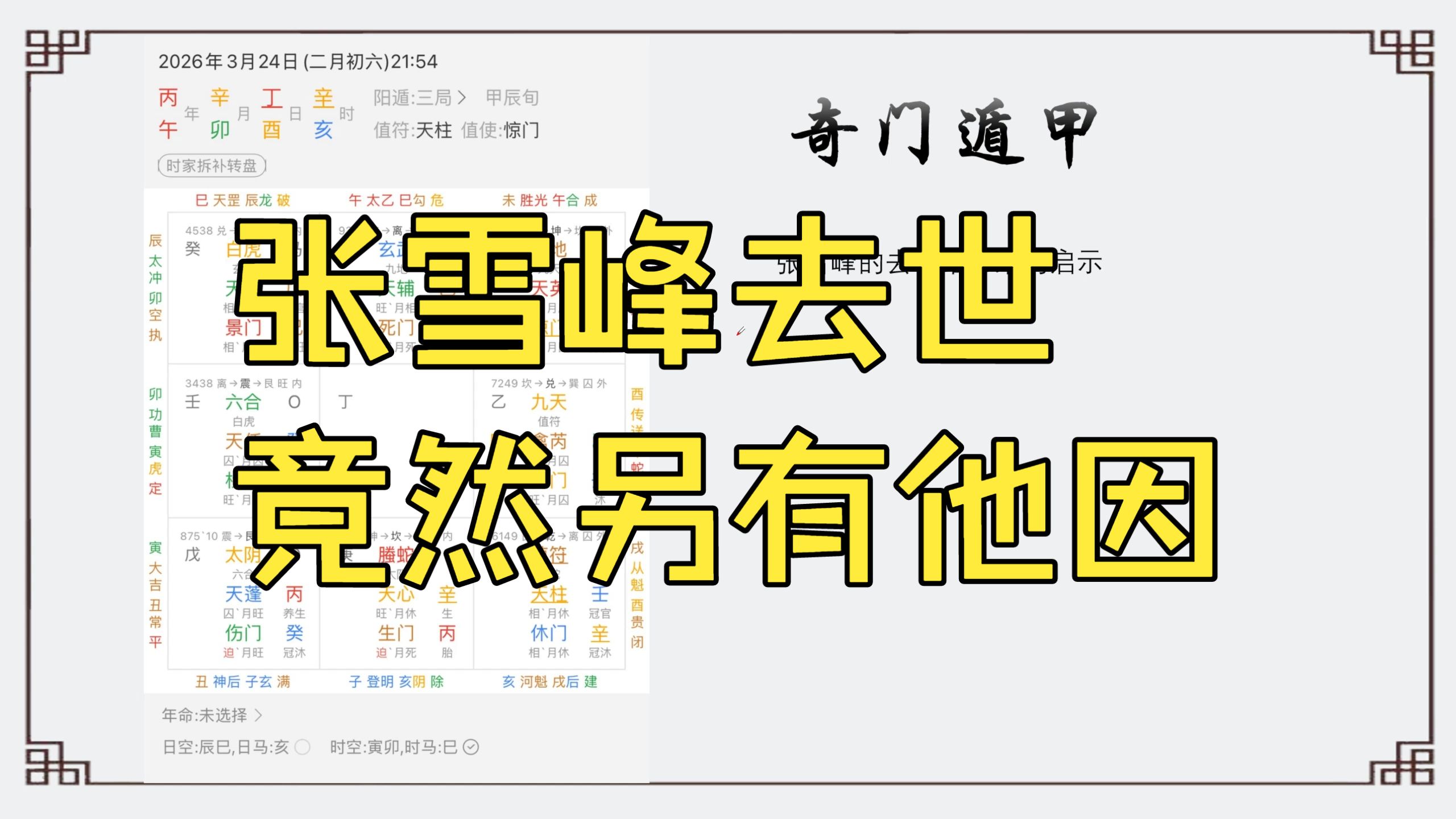 【奇门遁甲】张雪峰去世竟然另有他因