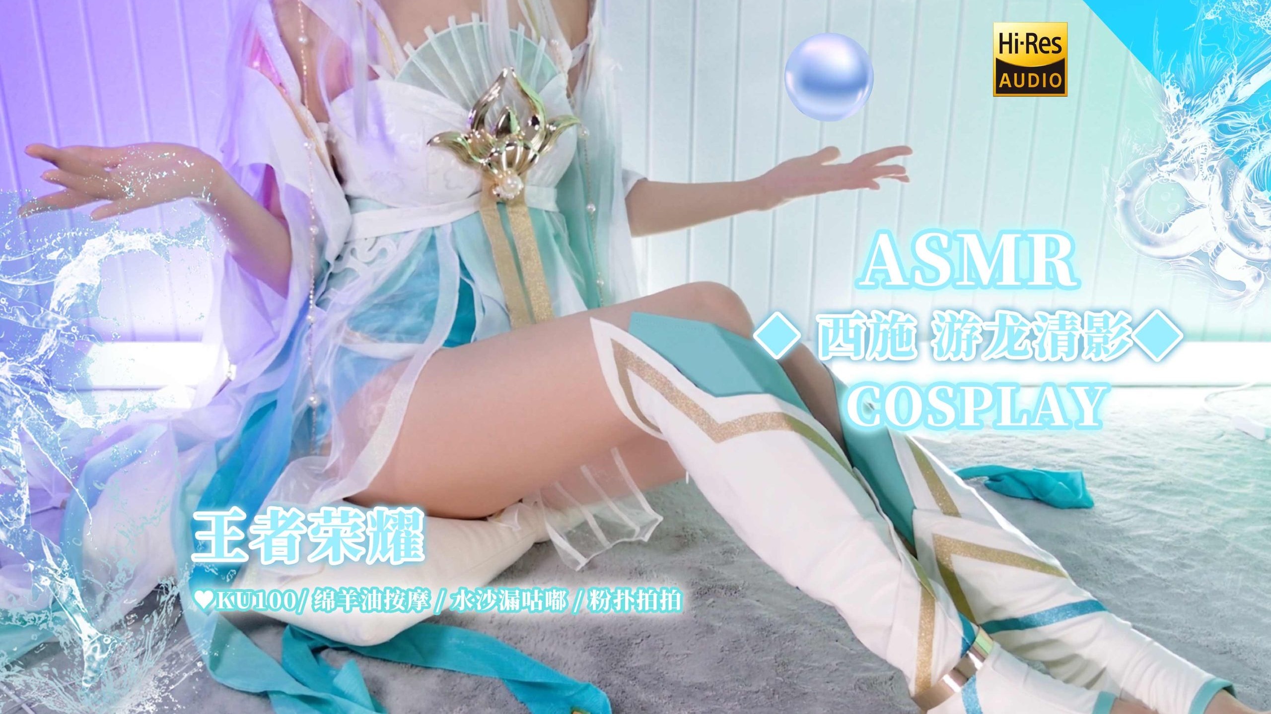 【梵拉ASMR】王者荣耀 西施·游龙清影💙绵羊油按摩😍水沙漏 💦粉扑拍拍耳朵~💞【Ku100低底噪/Hires无损/4K】