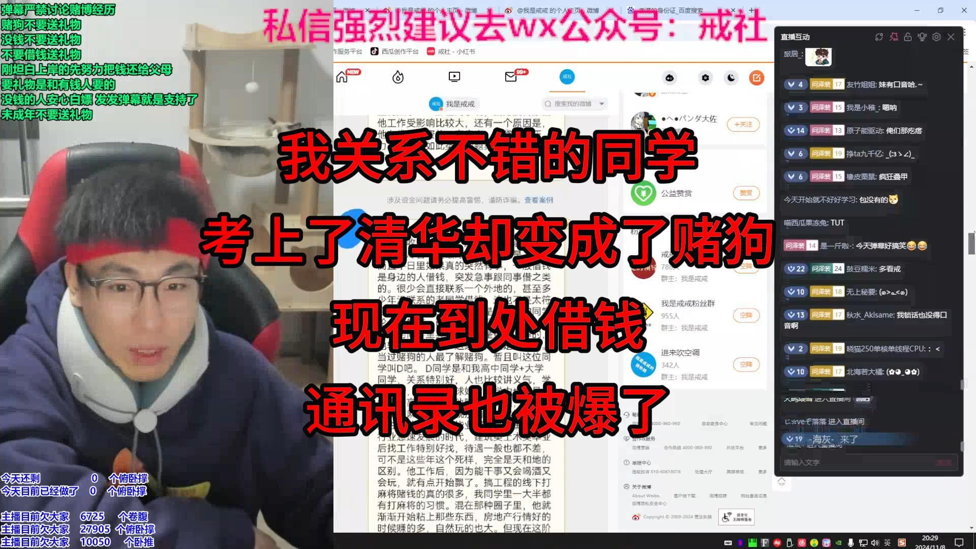 我关系不错的同学,考上了清华却变成了赌狗,现在到处借钱,通讯录也被爆了