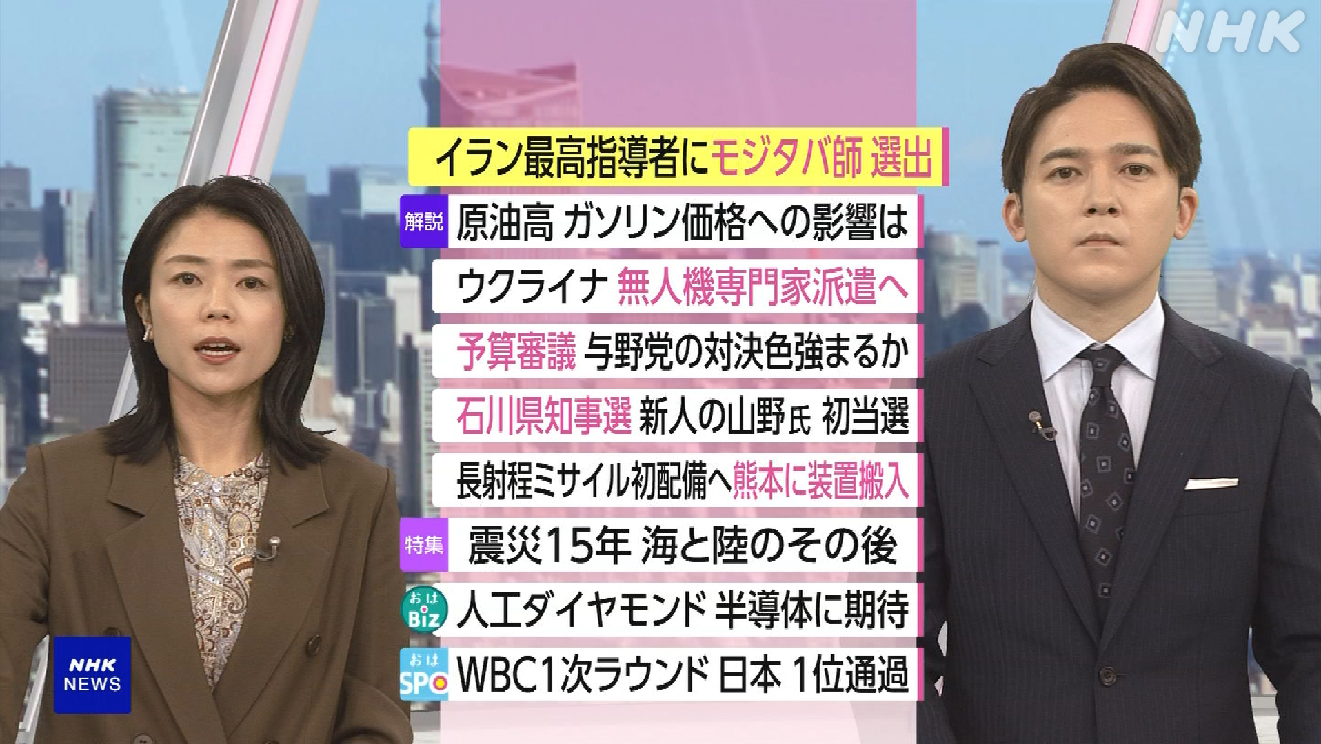 NHK おはよう日本 3月9日(月) 伊蘭新最高指導者に次男選出 米は是認せぬ方針・中国念頭に 初の長距離ミサイル配備へ・震災15年 沈みゆく津波の爪痕 他