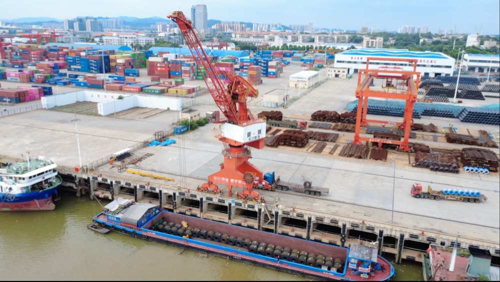 长沙霞凝新港航拍,铁路专用线吃灰