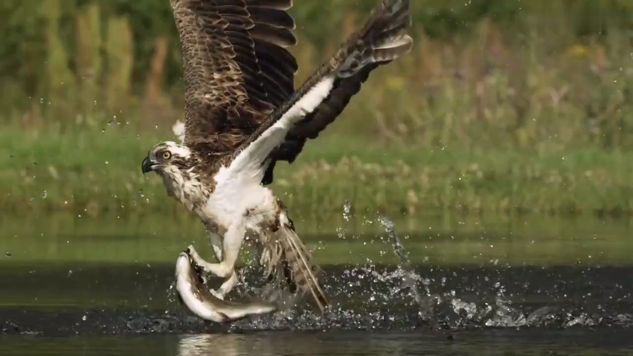 youtube慢镜头下壮观的鱼鹰捕鱼精彩瞬间