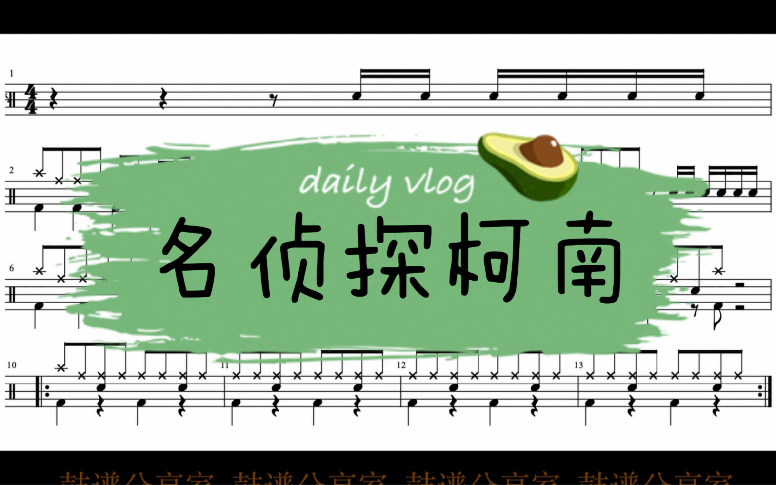 《名侦探柯南主题曲》完整架子鼓动态鼓谱