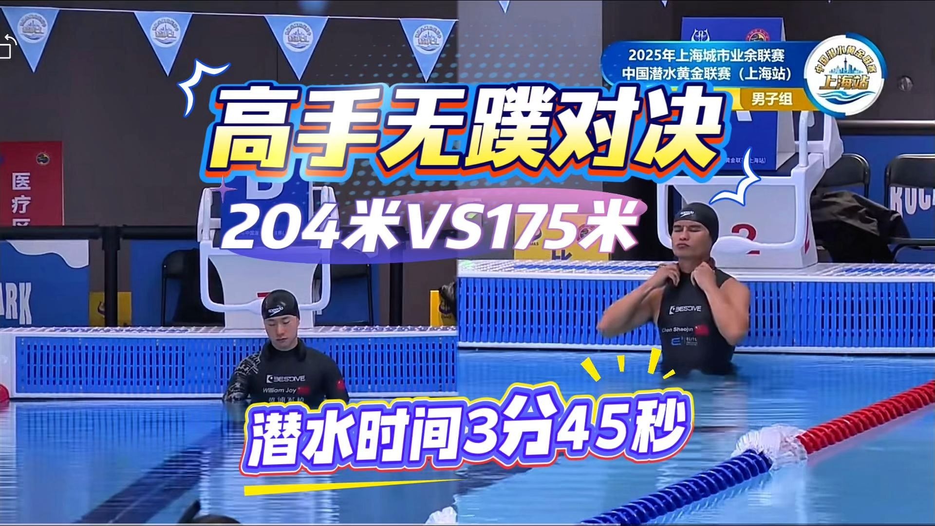 自由潜比赛 无蹼204米vs175米